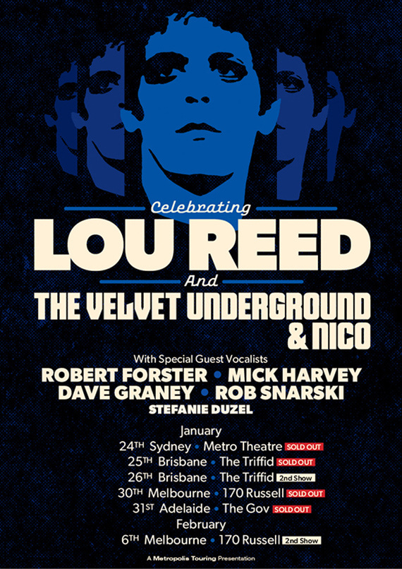 Then I did six dates as one of five singers with a crack band doing songs by The Velvet Underground or Lou Reed solo. We played in Sydney at the Metro, two shows in Brisbane at the Triffid, Adelaide at the Gov and two shows in Melbourne at 170 Russel Street. Singers were Rob Snarski, Robert Forster, Stef Duzel and Mick Harvey