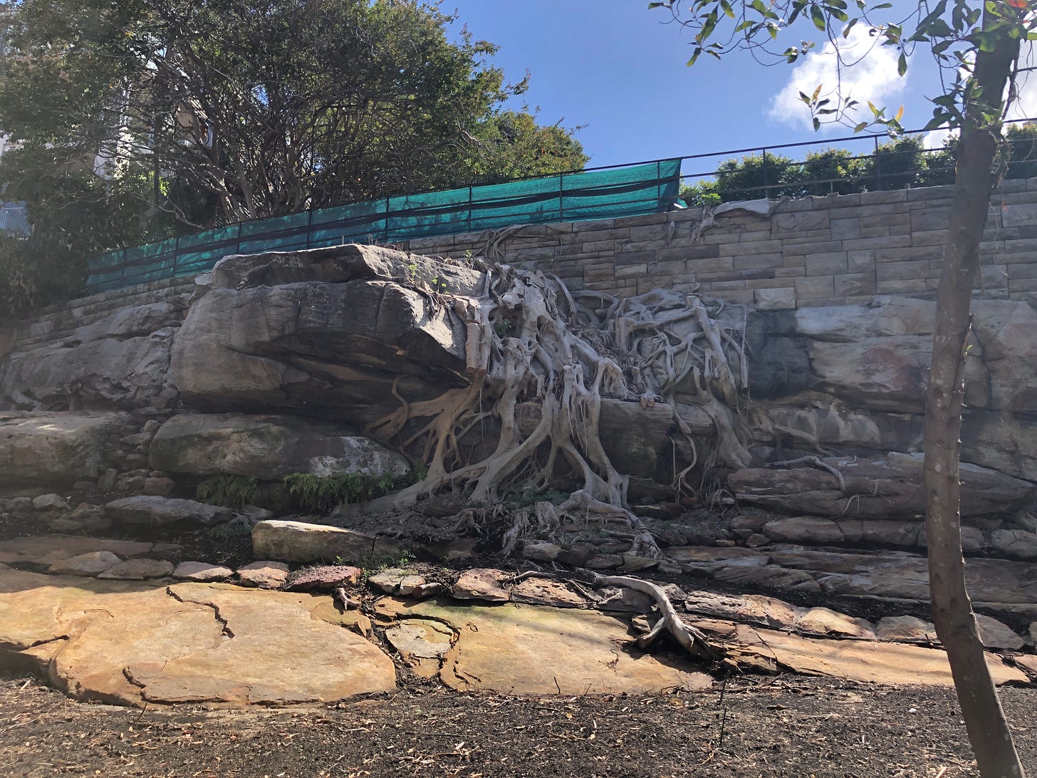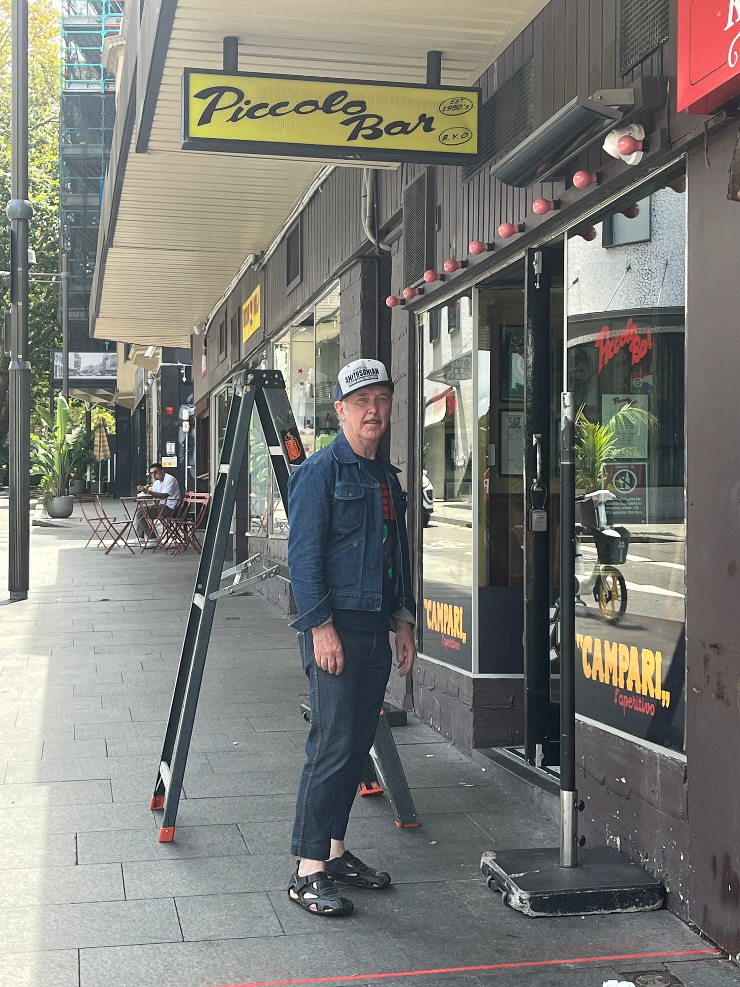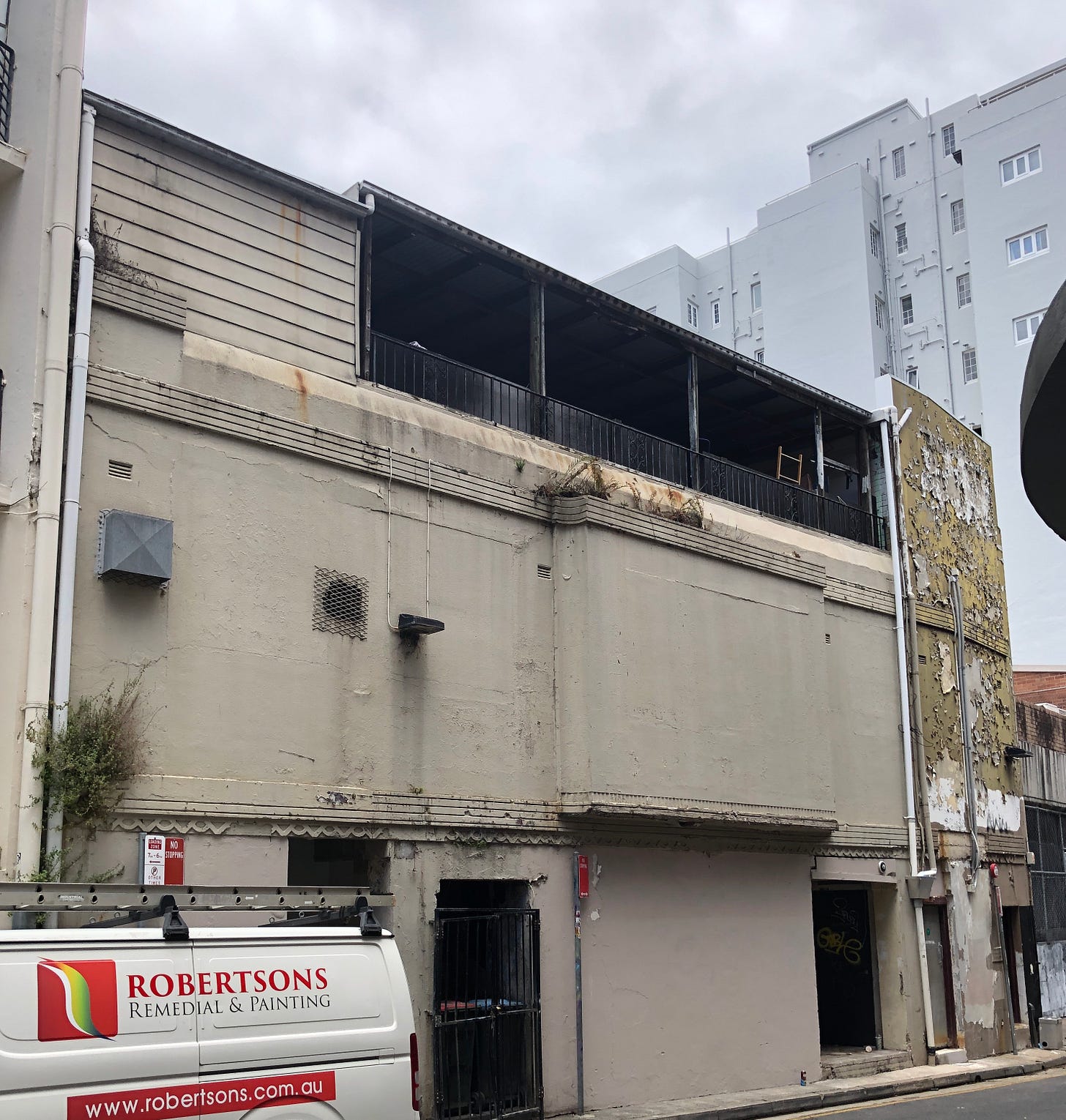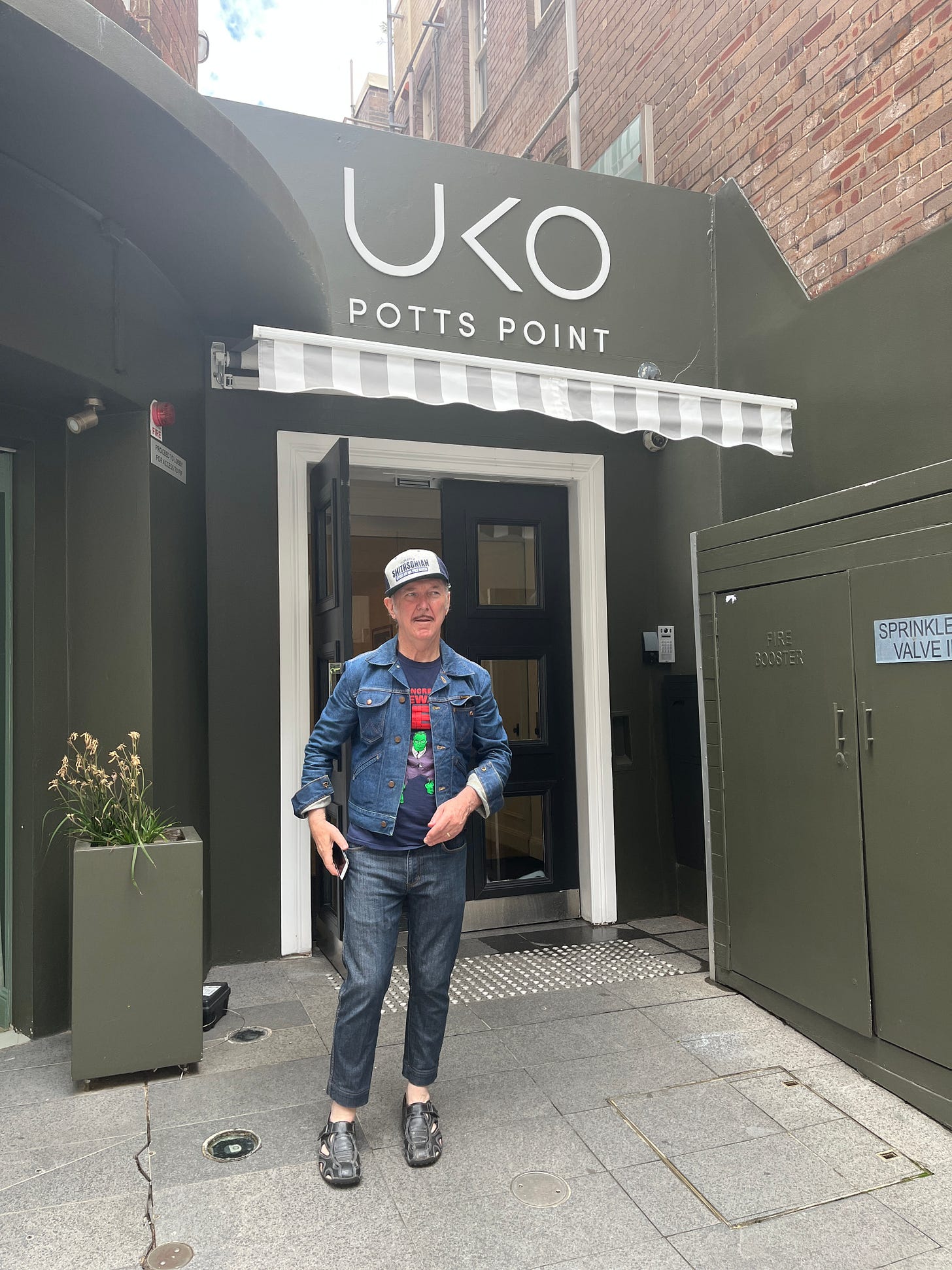 Meanwhile, we took a walk around the Kings Cross area with a guide book for art deco buildings. It was a lovely, mild Sydney day and we walked out of Kings Cross station and started along Darlinghurst Road. This place is fascinating to myself and Clare Moore as we spent so much time passing in and out and through here from the early 80s to the early 2000s. It was Australias den of iniquity, it’s hollow for sin, it’s erogenous armpit. Stepping out of a car into ground zero Kings Cross in its prime (which began well before the Vietnam War with its influx of US soldiers and sailors and drugs and rock’n’roll) was exciting. The air was fizzing, electric. Warm, humid, full of fumes, smoke , lights and noise. Madness. Now it’s like a fairground in daylight with all the magic and most of the set disappeared and the spell broken. Darlinghurst Road has lovely grey gum tress that hang overhead which must have been hanging over so much street drama for a hundred years. Now its all very quiet and genteel. No sex, no drugs, just real estate. Still beautiful and perhaps still a home for some lucky bohemians. Built on hard Sydney rock and made on hills and valleys and around surprising quiet bays of water. The name Kings Cross to me probably takes in Woolloomooloo, Double Bay, Darlinghurst. It’s a vibe.